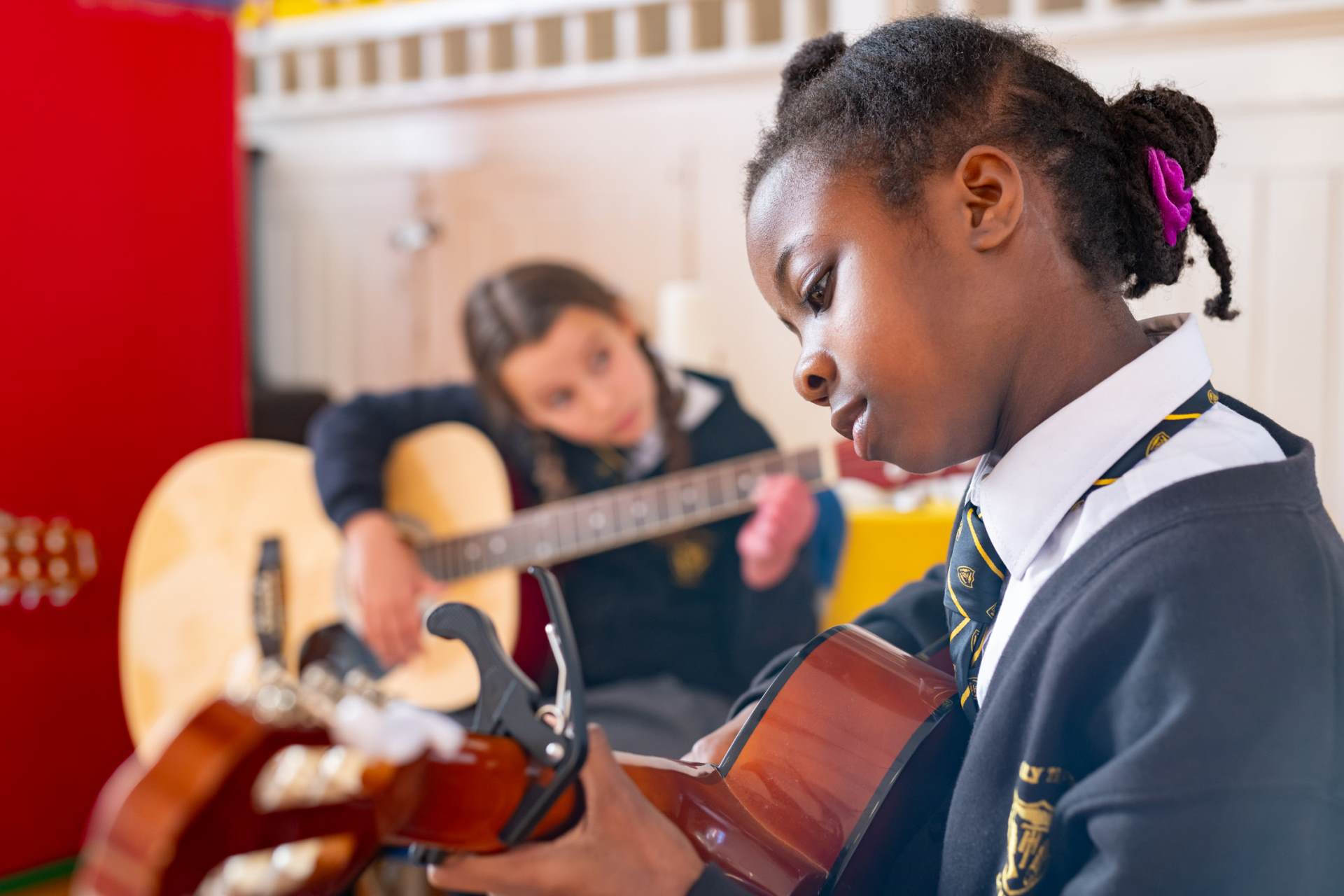 Through specialist teachers and partnerships our children are encouraged to discover and develop their musical talents. Pupils learn to play the recorder (Year 3), violin (Year 4) and ukelele (Year 5) in their Music lessons and instrumental tuition can also be offered in a range of instruments for those wishing to develop their skills further. Pupils can join after school clubs such as choir, piano and guitar, and they also have the opportunity to demonstrate their musical ability through annual events such as carol singing at St Christopher’s, Young Voices at the O2 arena, Prom Praise at the Royal Albert Hall and Song Fest at Deptford Green School.