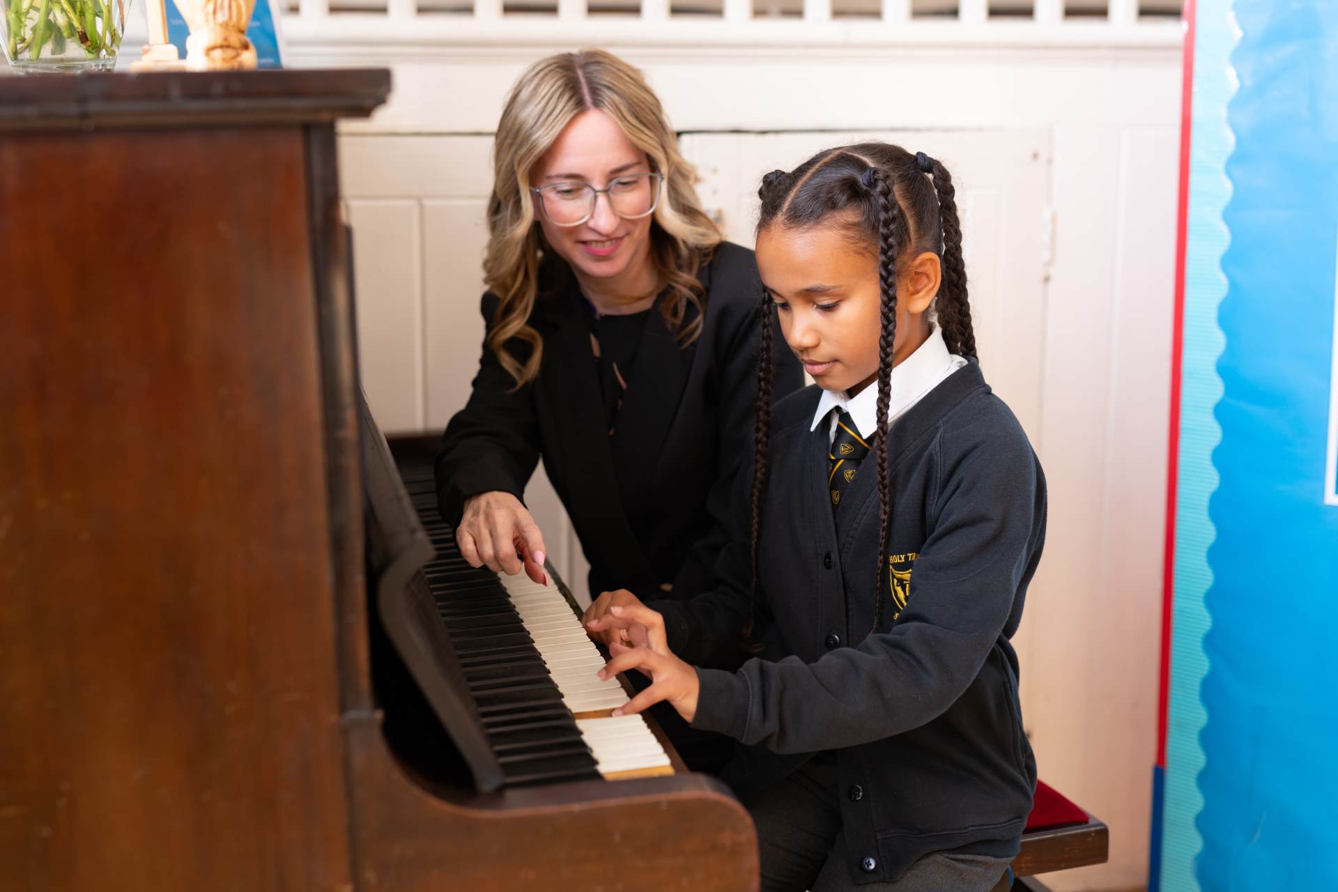 At Holy Trinity, all our weekly music lessons and whole school singing assemblies are taught by fantastic, specialist music teacher, Miss Jackson. In addition to children's weekly music lessons happening in each class, we ensure that our children have opportunities to take part in a wide range of music-related learning, musical events and experiences.