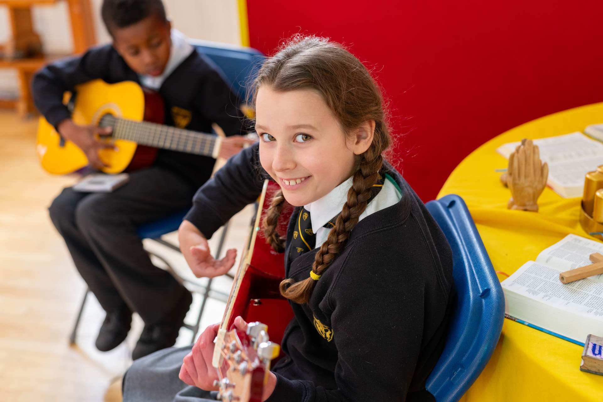 Our pupils are inspired and engaged in music education as it allows them to grow in self-confidence, creativity and gives them a sense of achievement. Music plays a key role in the curriculum at Holy Trinity Primary School, especially singing and is vital in our mission of creating aspirational pupils. We believe that every child should have the opportunity to develop their musical potential and we aim to nurture and encourage musical development across the school.