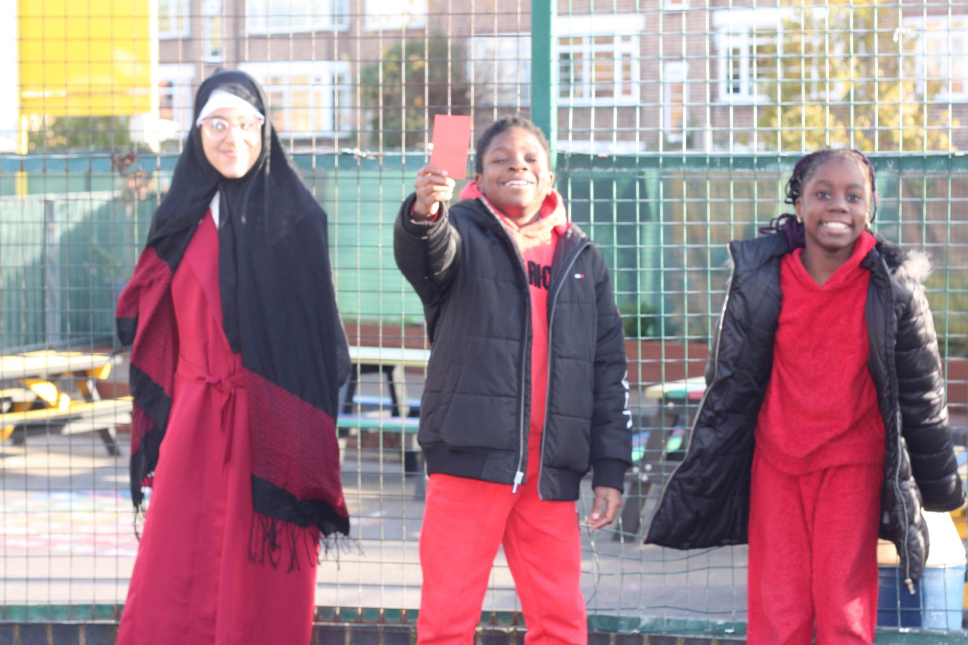 Children wore red today to show racism the red card! We had a collective worship about it this morning and thought about what it means to show a red card. Great effort everyone!